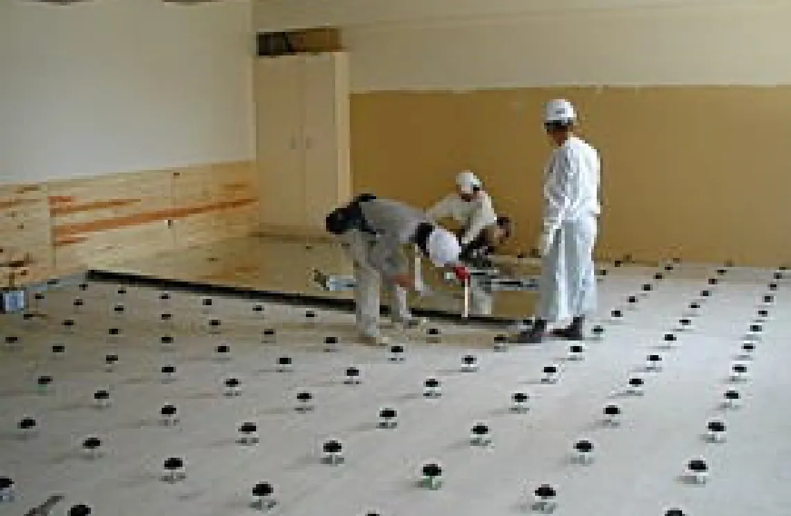 超硬質木製デッキフロアシステム施工中