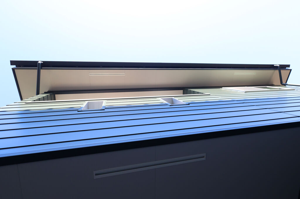 外壁は金属サイディングの鎧張りを採用しました。色ももちろんですが、横のラインがとにかくかっこいい。特に柱部分が一番のお気に入りです。