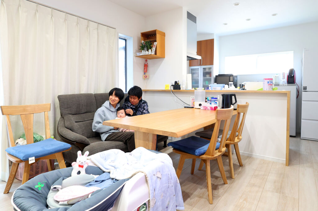 2025年11月から住み始めましたが、本当に快適です。「断熱等級5」と「床暖房」のおかげで、真冬でもエアコンをほとんど使わず、足元からポカポカ。以前の家では寒くて大変でしたが、今はスリッパも履いていません。9月に生まれたばかりの孫(まきちゃん)がハイハイしても安心です。