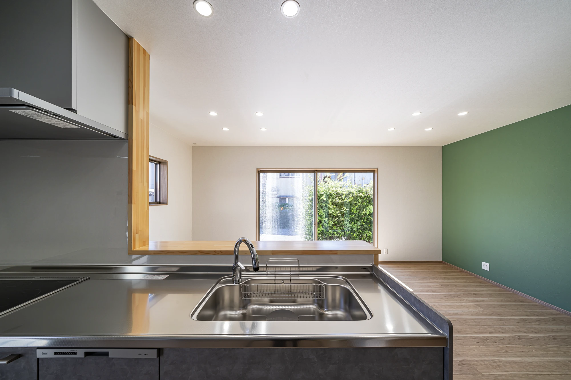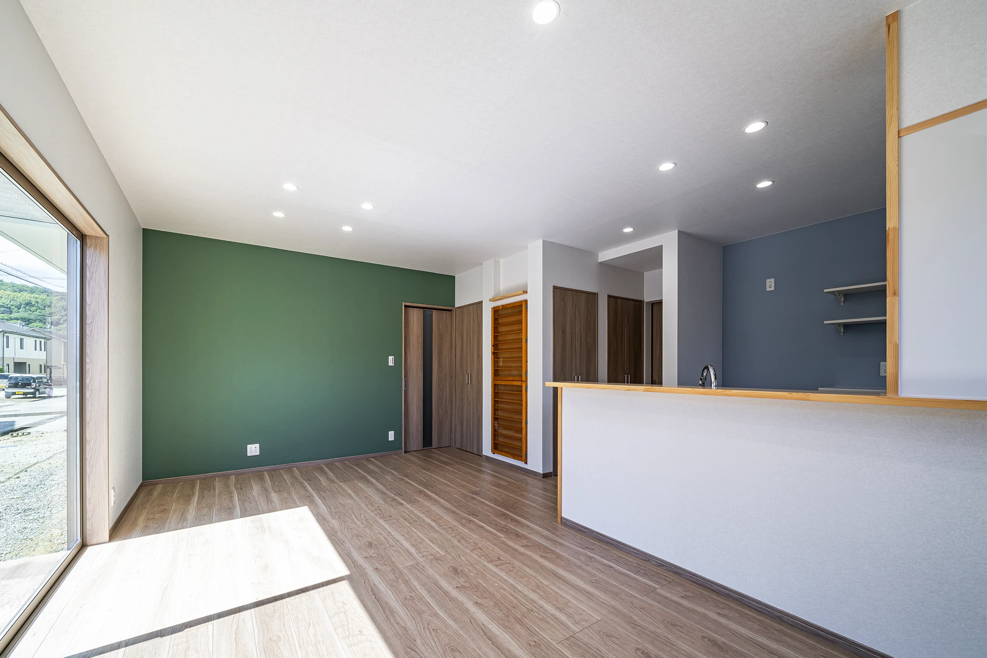 日差しがたっぷりと差し込む明るいリビングは、家族が自然と集まる、あたたかく心地よい空間に仕上がりました。