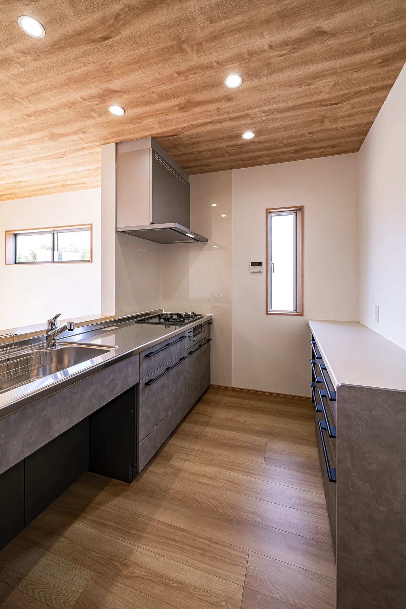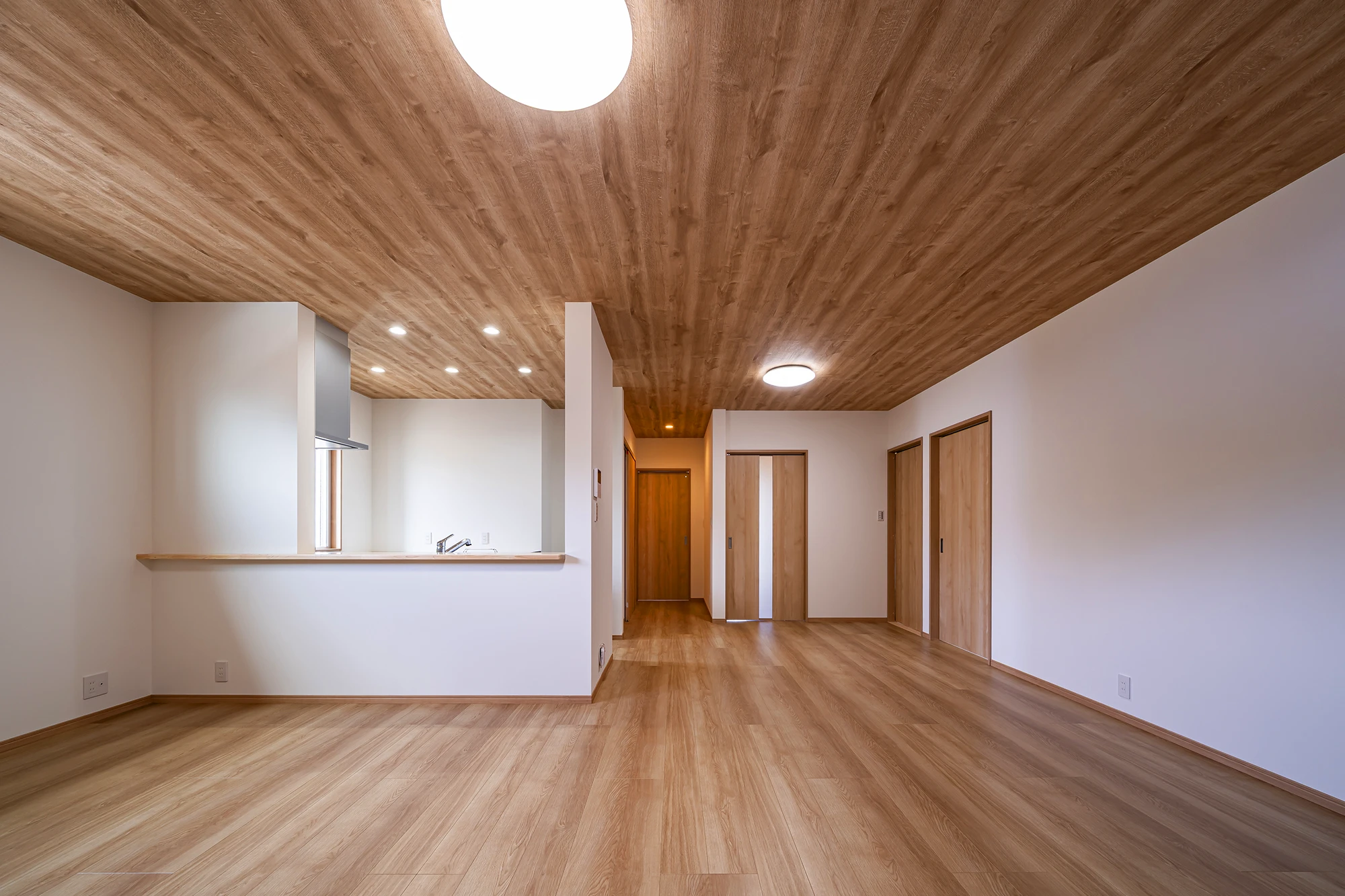 外観も室内もウッディな質感で統一し、心からくつろげる、あたたかみのある住まいに仕上げました。